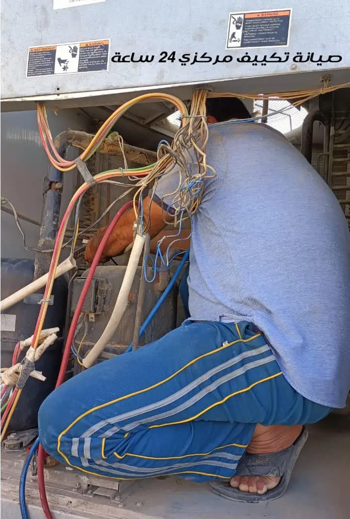 - فني تكييف باكستاني المعلم ناصر يقوم بعمل صيانة للتكييف المركزي